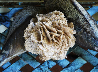 Blue Chair has arrived. I wanted a hobby, and thought about what made me happy. Beautiful things, fabric, design, and accessories. This came together quickly with an idea to create vintage cottage designs. It all started when we used burlap and lace for our wedding centerpieces to set on. Each table received a large square of burlap and lace overlay. Our wedding was in a barn, so the burlap was perfect. When we got back from the honeymoon, I was left with yards of burlap and lace. I thought, this can't go to waste. I would sit in my blue chair in my office, researching online, drawing, going through magazines, and then I came up with a list of things I HAD to try. While sitting in my blue chair, I thought, I need a name for this....and it dawned on me, my ideas came to me while sitting in my blue chair! Hence the name ; )